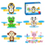 • Bunte Zahlen und Figuren mit verschiedenen Tieren für visuelles Lernen